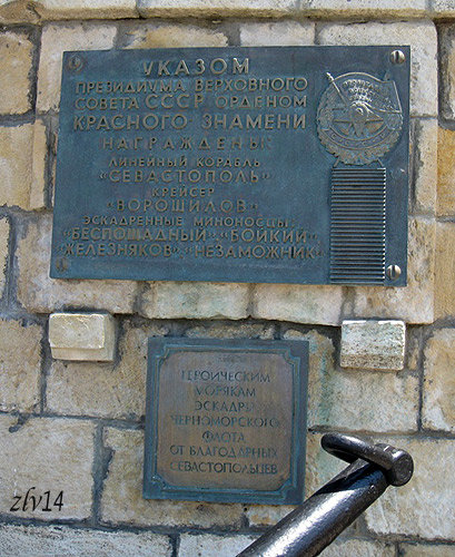 А далее, мы выходим к причалу, куда приходят катера с Радиогорки и Учкуевки, паром с Северной стороны. Около причала две тумбы -памятных знака , знаменующие набережные в честь адмирала Клокачёва Ф.А. и вице-адмирала Корнилова В.А.